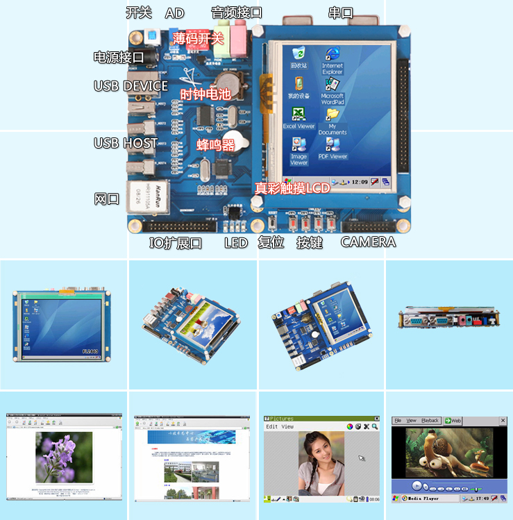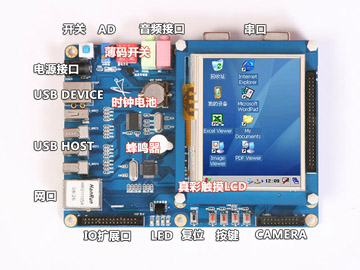 - 備注:獨(dú)有的硬件選擇啟動系統(tǒng)方案:開發(fā)板為Linux和Wince雙系統(tǒng),可直接通過撥碼開關(guān)進(jìn)行硬件選擇啟動的操作系統(tǒng)。這樣操作更加方便,也可使初學(xué)者朋友深入掌握硬件切換操作系統(tǒng)的方法。
